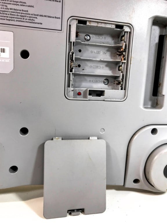 Wii Fit BALANCE BOARD for NINTENDO Wii. The previous owner of this balance board left batteries inside the battery compartment, which leaked and rusted one of the springs as pictured. Selling as a non-working wii fit board in need of the spring replaced.