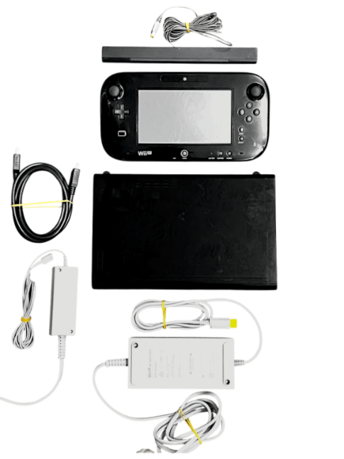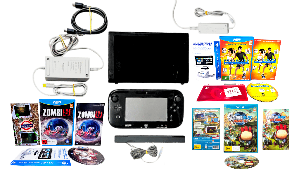 COMPLETE PLAYING BUNDLE: NINTENDO Wii U 32GB Console + Gamepad + Power Adapters + Leads + Games. This preowned Wii U bundle is in very good condition with only fine surface markings and superficial imperfections. This Wii U bundle includes the Wii U Gaming Console + Wii U Gamepad + Wii U AC Power Adapter for Gamepad + Wii U AC Power Adapter for Console + HDMI Lead + Wii Sensor Bar + THREE (3) x Wii U Games: