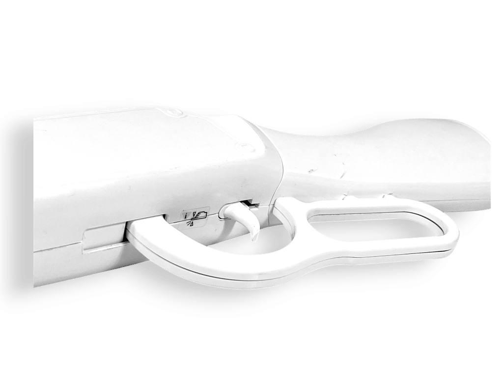 This preowned Nintendo Wii white gun is in excellent condition as pictured and compatible with a variety of shooting games including Cabela’s Dangerous Adventures, Call of Duty Modern Warfare, Call of Duty Black Ops, Chicken Shoot, Chicken Hunt, and similar first-person shooter games. A robust and quality item that is larger than most compatible Nintendo Wii guns.
