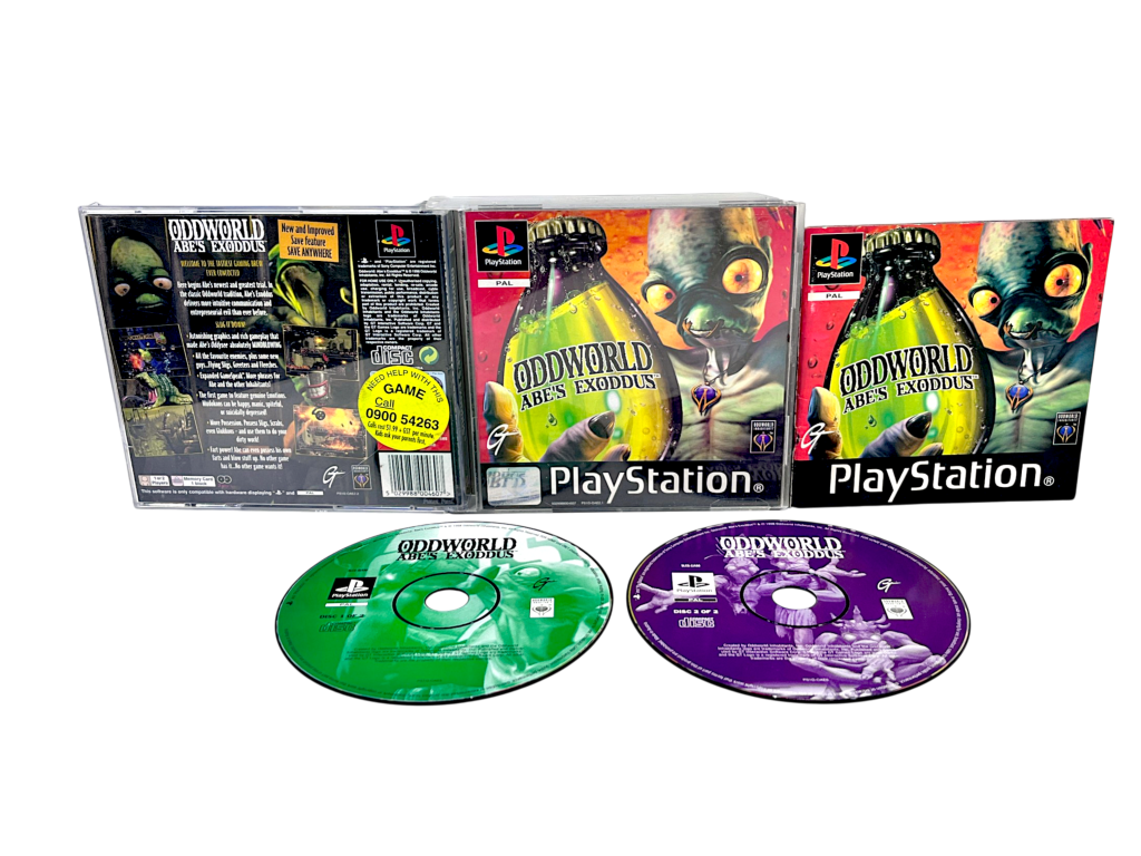 Oddworld: Abe’s Exoddus (PS1) *EXCELLENT & COMPLETE*. This preowned SONY PlayStation game is in excellent condition and complete with original case + covers (front and back cover slips both included) + instruction manual / booklet + game disc. Minor wear and tear to case. Refer photographs.
