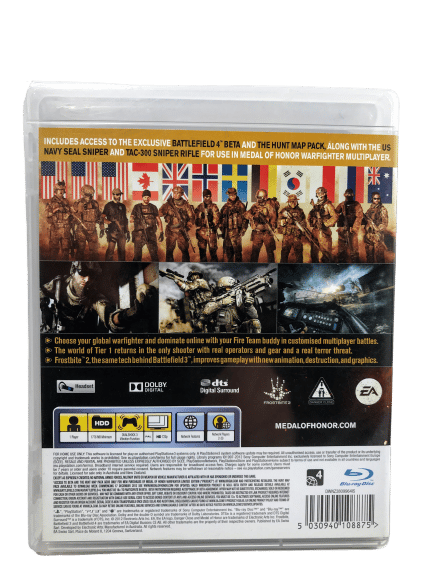 Excellent Condition & 100% Complete with Contents: MEDAL OF HONOR WARFIGHTER LIMITED EDITION / MEDAL OF HONOUR WARFIGHTER LIMITED EDITION for SONY PlayStation 3 / PS3. This preowned game comes complete with case + cover + manual / booklet + game disc. Note that any bonus “Limited Edition” downloadable vouchers will have expired, but these were promotional only and are not required for gameplay or completion. The full Medal of Honor Warfighter game is included on the game disc.