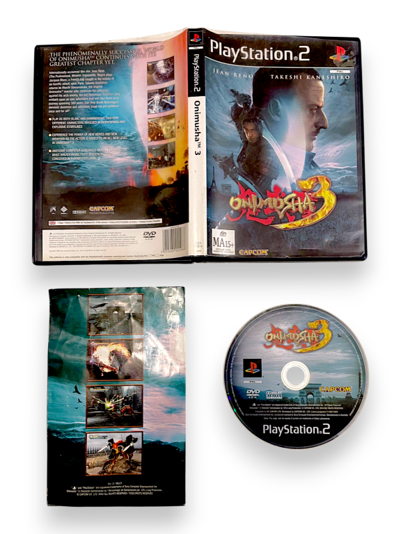 Excellent condition & 100% complete with contents: ONIMUSHA III / ONIMUSHA 3 for SONY PlayStation 2 / PS2. PAL REGION GAME – FULL COMPATIBLE WITH NEW ZEALAND PS2 CONSOLES. This preowned game disc is in excellent condition and comes complete with case + cover + manual / booklet + game disc.