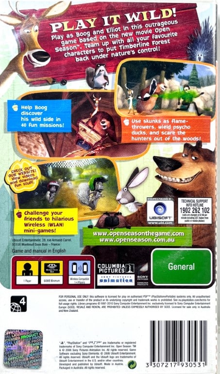 Excellent condition & 100% complete with contents: OPEN SEASON The Video Game for SONY PSP / PlayStation Portable. This preowned game comes complete with case, cover, manual / booklet, and game disc inside its miniature UMD case.