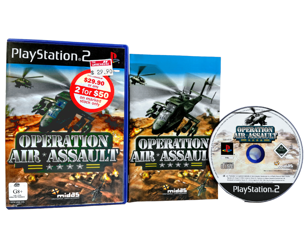 Mint condition & 100% complete with contents: OPERATION AIR ASSAULT by Midas Interactive – for SONY PlayStation 2 / PS2. This preowned game is in superb condition and comes complete cover, manual / booklet, and game disc INSIDE BLACK DVD CASE (case differs slightly to pictured blue case).