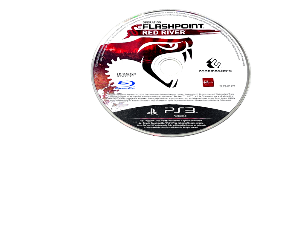 Operation Flashpoint: RED RIVER for SONY PlayStation 3 / PS3. This preowned game disc is in excellent condition and comes inside Operation Flashpoint Dragon Rising Case (but the game disc is Red River and NOT Dragon Rising).