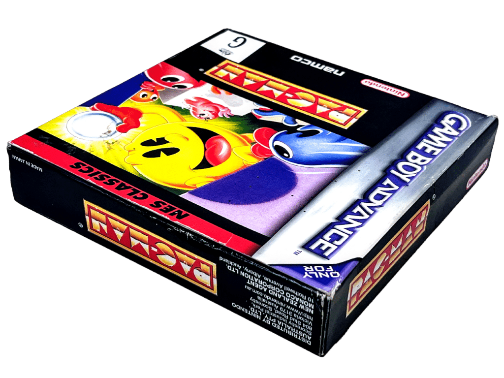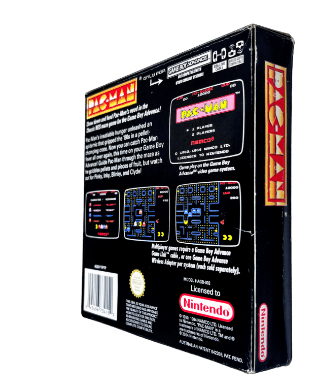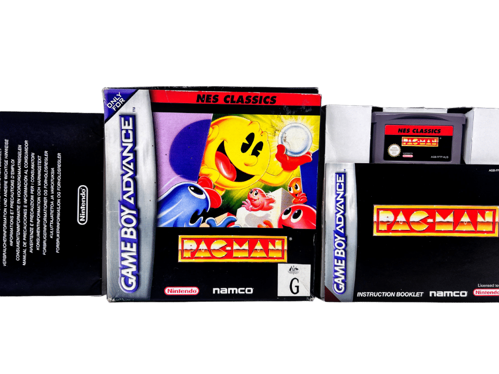 Boxed Nintendo Game Boy Advance game in very good condition & complete with inner contents: PAC-MAN / PACMAN / PAC MAN NES Classics Series Edition for Nintendo Game Boy Advance (Gameboy Advance). This preowned game is in superb condition and includes pictured box + manual / booklet + game cartridge + Nintendo Game Boy Advance booklet + game cartridge Cardboard Mount. Each of the internal contents are superb. The box has been protected inside a Game Boy Advance Box Protector (plastic box designed specifically to preserve the quality of GBA game boxes). Box has some light shelf wear pictured, but is protected inside its plastic protector and remains as such in our Christchurch Appleby Games Store.
