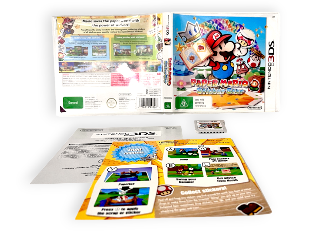 Paper Mario: Sticker Star (3DS) *MINT COMPLETE*. This pre-owned game is in excellent condition and comes complete with pictured contents. A tidy and complete collector’s item. Refer photographs.