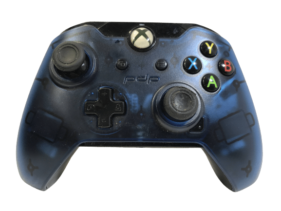PDP Wired Controller XBox One – Blue. This preowned controller HAS A STICKY LEFT TRIGGER. Trigger presses down and stays in position. Needs a new spring. Selling as a preowned faulty controller in need of repair. Controller only. No leads included. Refer images.