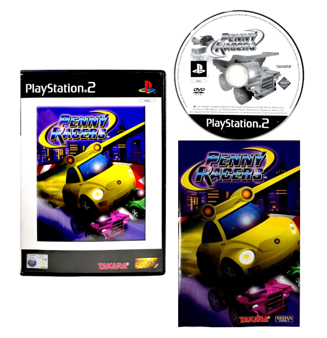 PENNY RACERS / PENNYRACERS / PENNY-RACERS for SONY PlayStation 2 / PS2. This preowned game is in superb condition and includes case + cover + game disc. Case is a Black DVD case. Please note that the MANUAL IS NOT INCLUDED in this listing, but the game is self-explanatory, and the instructions are readily available online.