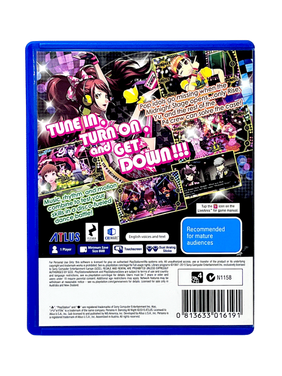 Persona 4: Dancing All Night (PS Vita) for SONY PlayStation Vita / PS Vita. This preowned game is in superb condition and comes complete with case, cover, and game cartridge.