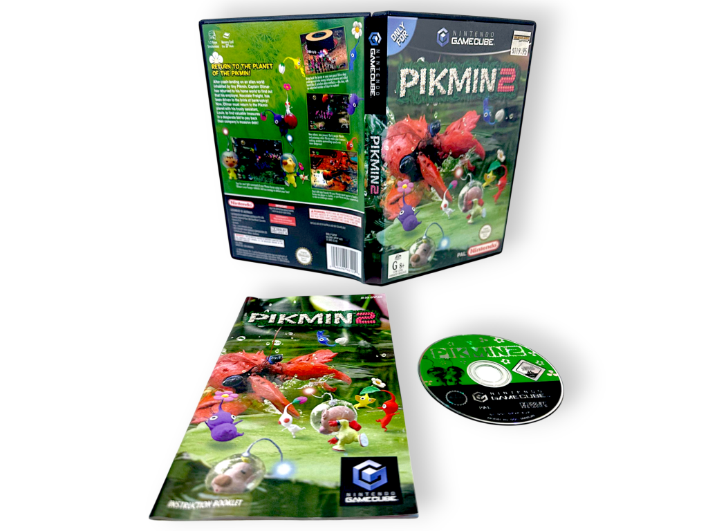 Return to a strange and charming alien world in Pikmin 2, where Captain Olimar and his new partner Louie must repay a massive company debt by collecting treasure scattered across a mysterious planet. Command colourful squads of Pikmin—each with unique abilities—to battle creatures, solve environmental puzzles, and explore intricate caves filled with danger and rewards. With deeper strategy, no time limit, and co-op challenges, Pikmin 2 is widely regarded as one of the most engaging and rewarding titles on the Nintendo GameCube.