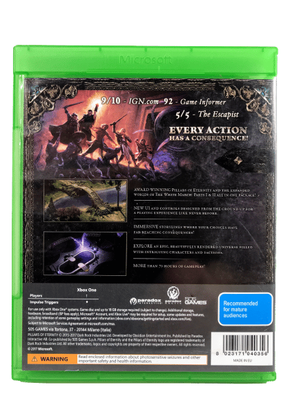 Excellent Condition & 100% complete with contents: Pillars of Eternity: Complete Edition for XBox One. This preowned game comes complete with case, cover, manual / booklet, and game disc.
