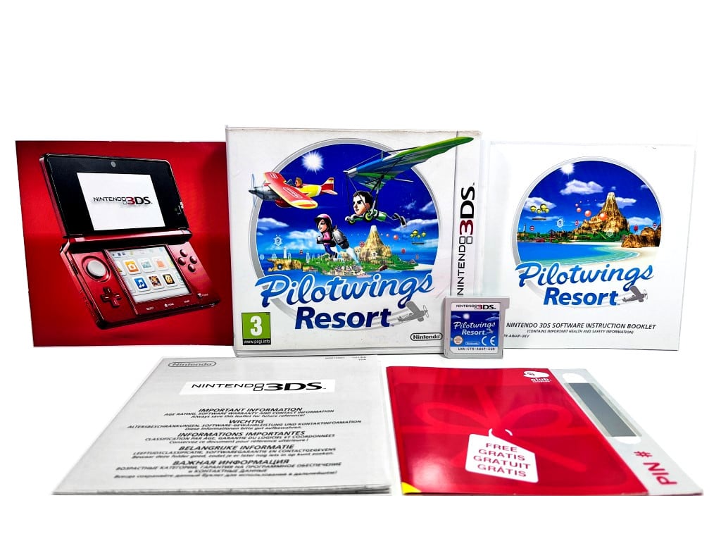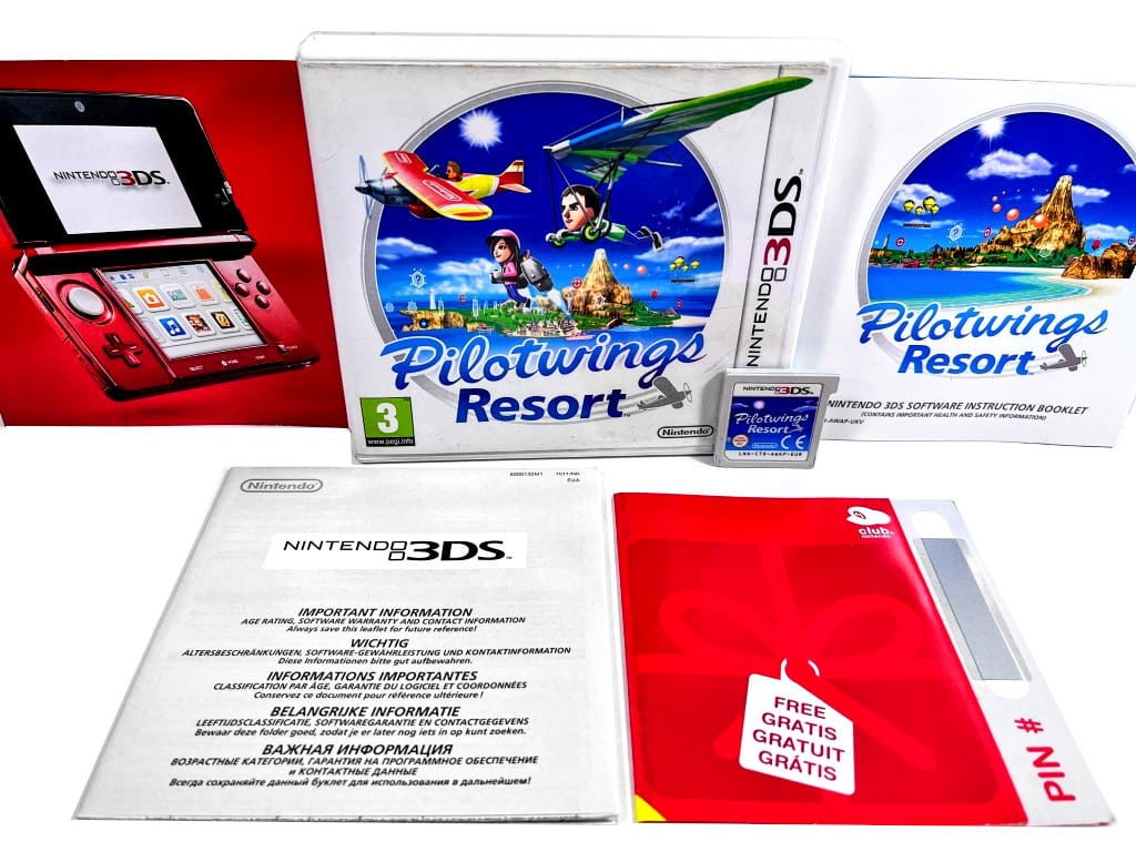 Excellent condition & 100% complete with ALL contents: Pilot Wings Resort for Nintendo 3DS. This preowned game is in superb condition and comes complete with case + cover + manual / booklet + 3DS console promotional booklet + Nintendo 3DS booklet + Brand New Unscratched Nintendo Voucher Card + game cartridge.