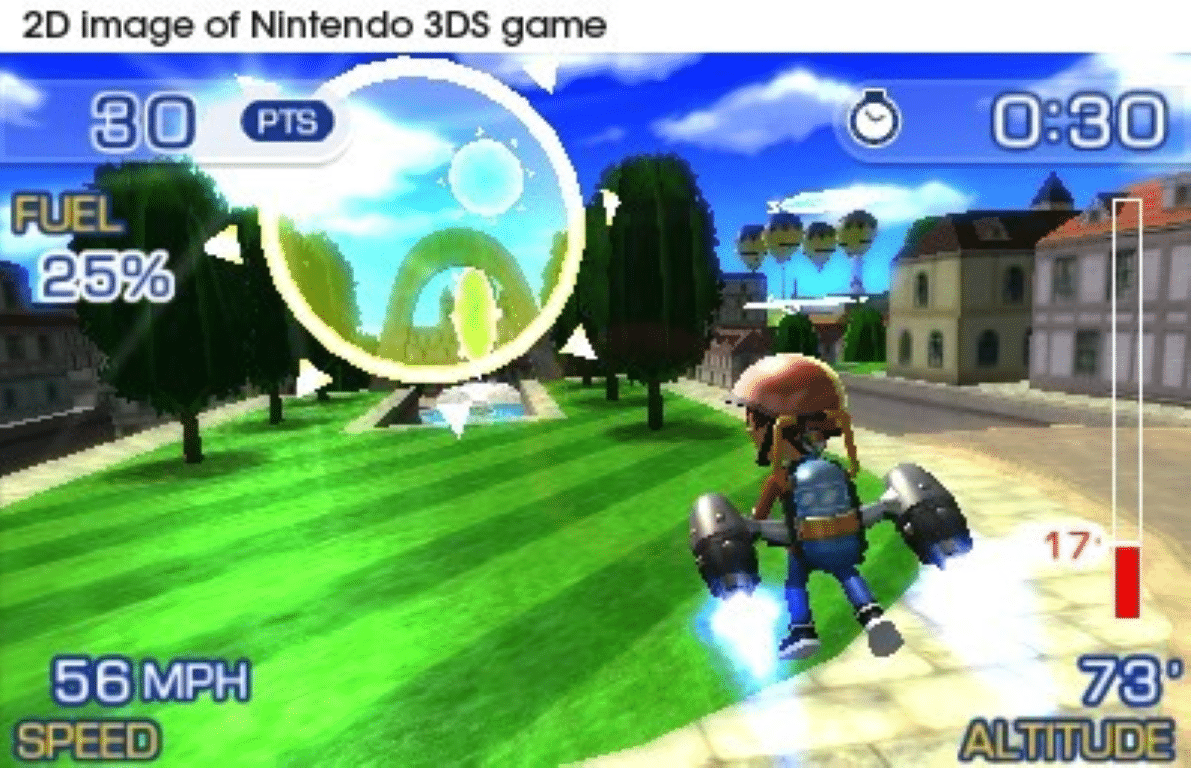 Pilotwings Resort puts the player in the pilot’s seat as never before in this long-awaited three-dimensional update to the Pilotwings series! Import your Mii characters from the Nintendo 3DS Mii Maker and explore Wuhu Island (the star of Wii Sports Resort and Wii Fit Plus) by plane, by hang glider and by rocket belt. Each vehicle type features unique controls that offer a different challenge. Complete around 40 challenging flight missions in Mission Mode to earn stars, or scour Wuhu Island for hundreds of collectible Extras in Free Flight Mode as you unlock interactive 3D Dioramas of various aircraft and famous island monuments. Get a bird’s-eye view of familiar Wuhu Island sites – and a few new ones! You can even share your experiences with friends and family members by taking in-game photos and saving them to the Nintendo 3DS photo album. Pilotwings Resort is an aerial sports game gem that offers amazing 3D views of Wuhu Island.