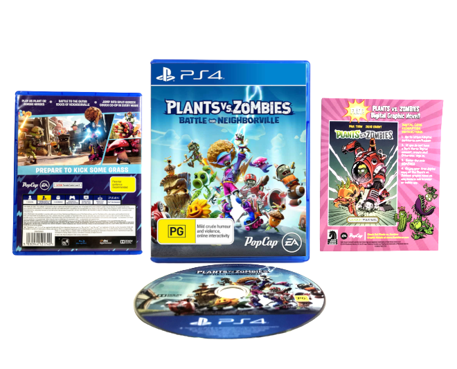 Excellent condition & 100% complete with contents: Plants vs Zombies: Battle for Neighbourville for SONY PlayStation 4 / PS4. This preowned game comes complete with case, cover, 2 x carded inserts, and game disc.