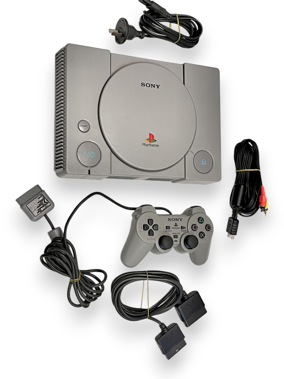 Description: The original PlayStation console bundle includes controller, cables, and everything needed to start gaming. Known for revolutionising the industry, it boasts an iconic library of titles. A must-have for collectors and retro gamers alike.