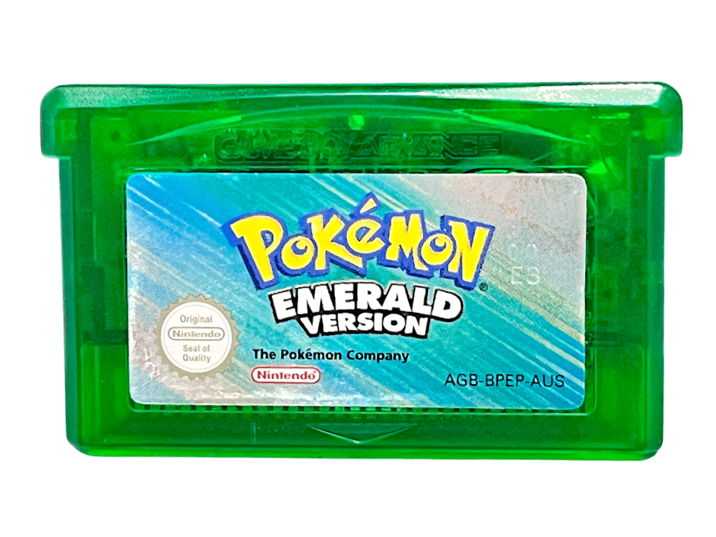 Pokemon Emerald Version (Game Boy Advance). This preowned Nintendo GBA game (Nintendo Gameboy Advance game) is in good condition – tested and playing perfectly. This game cartridge comes as pictured without its original box. The game has been tested and plays perfectly well. The game will require a new battery if the buyer desires to have game saves. Refer photographs.