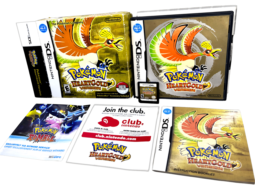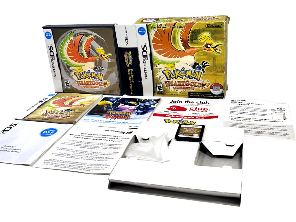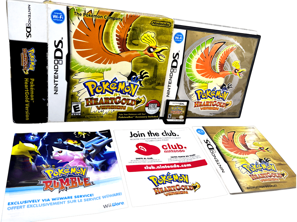 RARE FIND: BOXED COLLECTOR’S EDITION – in Excellent Condition & including all inner contents EXCEPT POKE WALKER (POKEWALKER NOT INCLUDED): POKEMON HEARTGOLD / Pokemon Heart Gold Collector’s Boxed Edition for NINTENDO DS. This game is preowned but all inner contents are in MINT Condition: game + inner booklets. Outer box with mild shelf wear only, and the Game Case + Cover + Manual / Booklet + Game Cartridge each AS NEW. NOTE THAT THE POKEWALKER IS NOT INCLUDED.