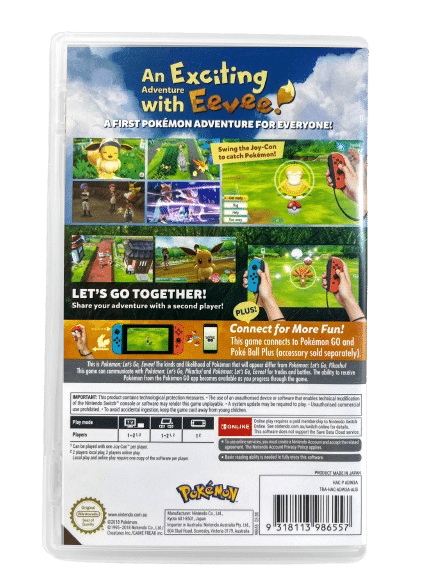 POKEMON Let’s Go Eevee for Nintendo Switch. This preowned game is in excellent condition.
