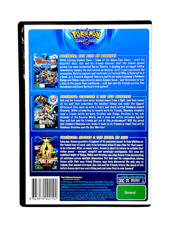 Pokemon Movie 3-Pack DVD (Jirachi Wish Maker / Destiny Deoxys / Giratina & The Sky Warrior). This preowned item is in good condition and comes as pictured. Refer photographs for included item / contents.
