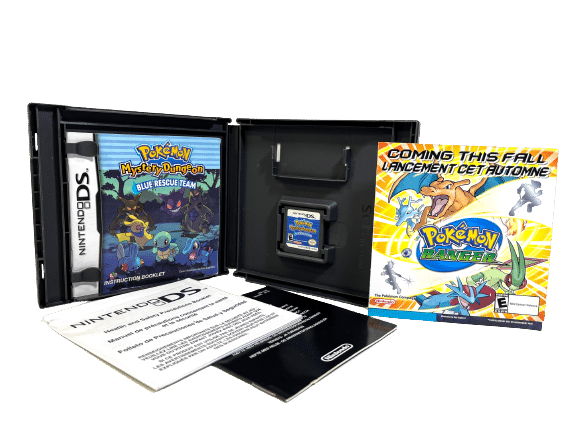 RARE FIND: Excellent Condition & 100% Complete with ALL Contents: POKEMON MYSTERY DUNGEON BLUE RESCUE TEAM for Nintendo DS. This preowned game is a tidy and complete collector’s item, with original case, cover, manual / booklet, Nintendo leaflet, and official bundled Pokemon carded promo insert. Manual has some very fine paper creasing, but this is an extremely minor imperfection, and all other contents are superb. Add this to your collection today and display it proudly.