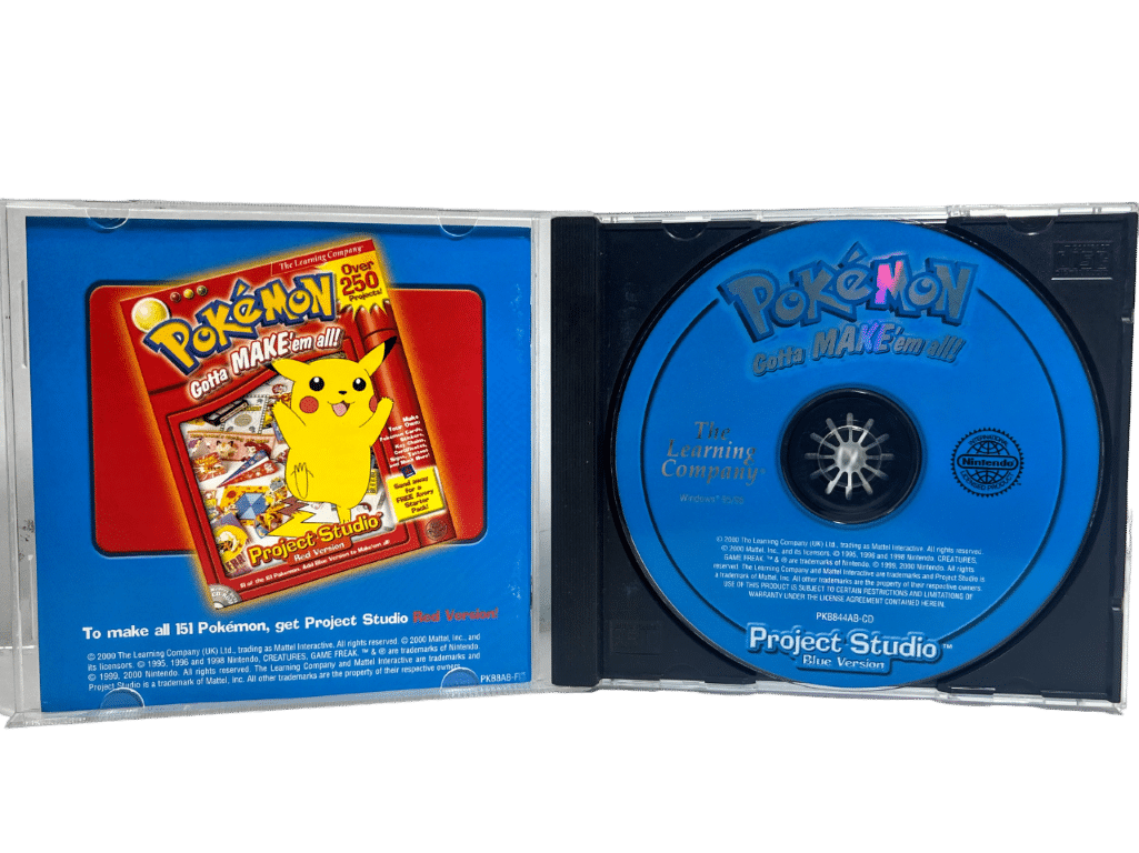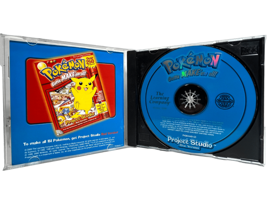 Genuine POKEMON Project Studio PC Game in Excellent Condition & 100% Complete with Contents: POKEMON STUDIO BLUE VERSION for PC & CD-ROM. This preowned authentic Pokemon game is in superb condition and comes complete with case + manual / booklet + game disc. Light markings to plastic case, but this is a very minor imperfection, and all inner contents are fantastic.