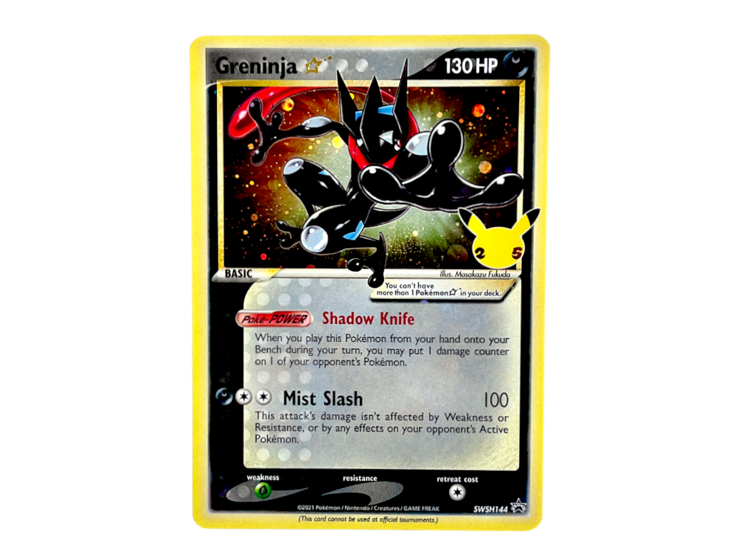 POKEMON TCG – Greninja Gold Star Sword & Shield Promo SWSH144. This Pokemon card is in excellent condition as pictured. Subtle spots of whitening on back. Refer photographs.