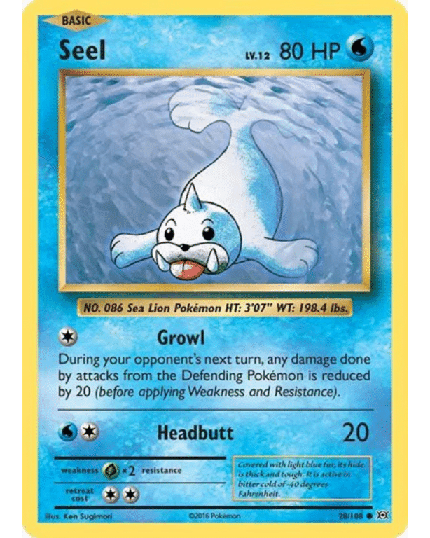 Seel 28/108 Evolutions. This Pokemon card is in good condition.
