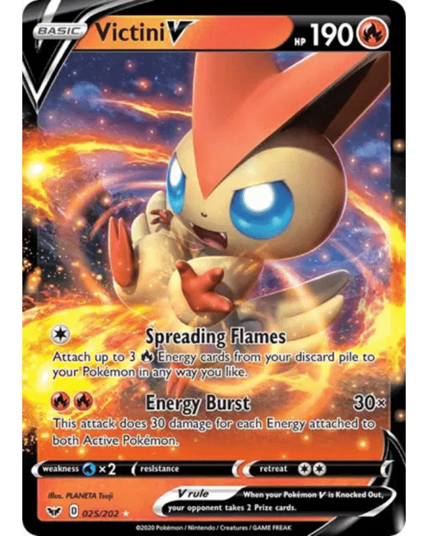 Victini V 025/202 Sword & Shield Base Set. This Pokémon card is in excellent condition.