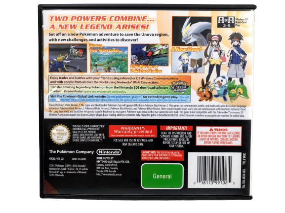 RARE FIND: Genuine NZ Edition – As New – MINT Condition & 100% complete with contents: Pokemon WHITE VERSION 2 / Pokemon White 2 / Pokemon White V2 for Nintendo DS. This game is preowned but As New – Pristine condition and complete with case + cover + manual / booklet + Nintendo booklet + Nintendo wifi booklet + Nintendo Club card + game cartridge. Add this to your collection today and display it proudly.
