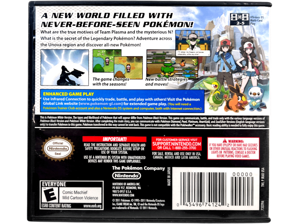 Excellent Condition & 100% Complete with ALL Contents: POKÉMON White Version / Pokemon WHITE Version for NINTENDO DS. This game is preowned game comes complete with case + cover + inner paperwork / booklets + game cartridge. Refer photographs.