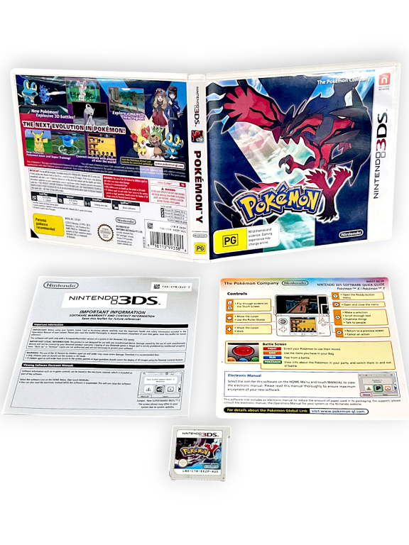 Excellent condition & 100% complete with contents: POKEMON Y for NINTENDO 3DS. This preowned game is in fine condition and includes case, cover, Pokemon Y instructional card, Nintendo 3DS leaflet and game cartridge. A tidy and complete collector’s item overall. Refer photographs.