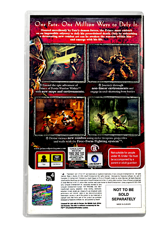 Excellent condition & 100% complete with contents: PRINCE OF PERSIA REVELATIONS for SONY PlayStation Portable / PSP. This preowned game comes complete with case + cover + manual / booklet + game disc inside its miniature UMD case.
