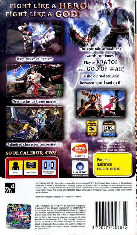 - Dynamic battles – Take the signature Soulcalibur game play wherever you go with visuals unlike anything seen on the PSP system