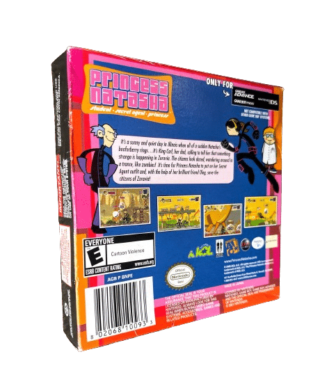 Excellent Condition & 100% Complete with Box + Internal Contents: PRINCESS NATASHA the game for Nintendo Game Boy Advance / Nintendo Gameboy Advance. This preowned game is in superb condition and comes with pictured box + instructions + game cartridge. A tidy and complete collector’s item.