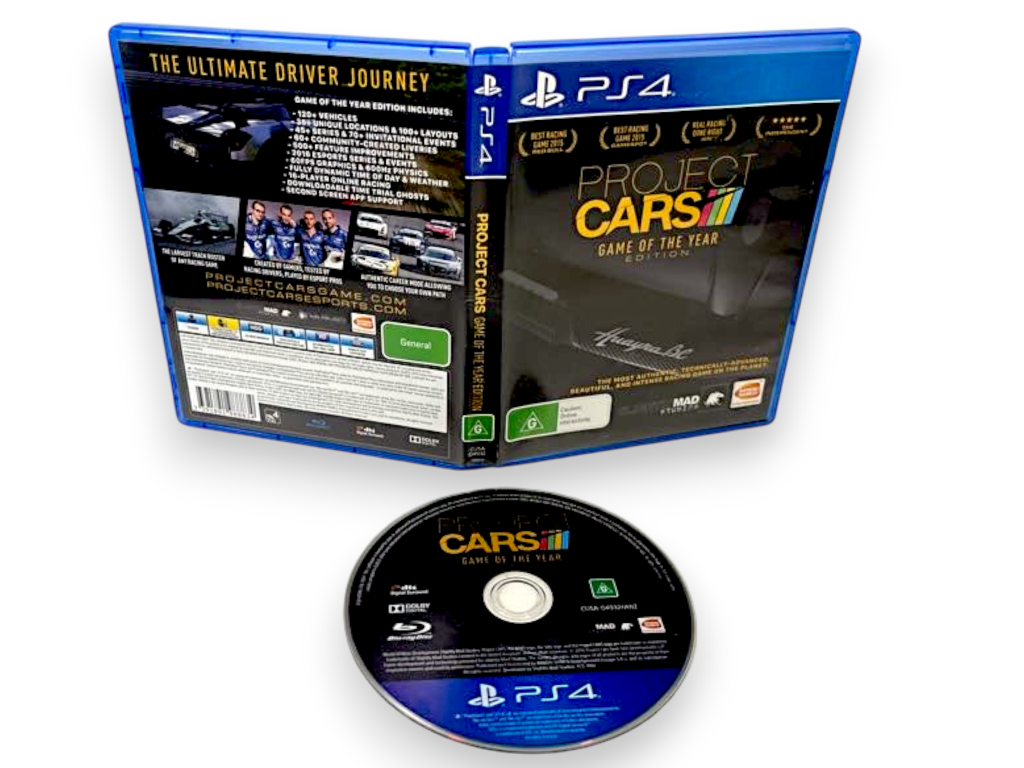 Project CARS (PS4) *GENUINE GAME OF THE YEAR EDITION*. RARE PS4 GAME: PROJECT CARS GAME OF THE YEAR EDITION in excellent condition and complete with GENUINE GOTY EDITION GAME DISC (with bonus content on the disc itself). This preowned SONY PlayStation 4 game / PS4 game is in excellent condition and includes pictured contents.