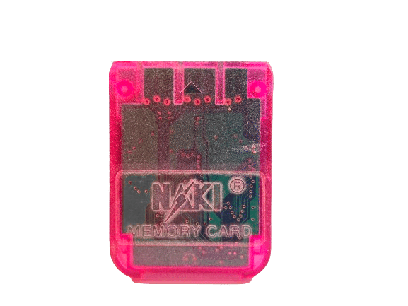 Genuine PS1 Memory Card by NAKI – TRANSLUCENT PINK PS1 Memory Card for use with SONY PlayStation 1. This preowned memory card is in excellent condition. Price is for ONE PS1 Memory Card (NAKI) TRANSLUCENT PINK.