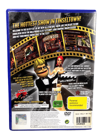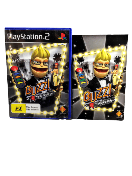 COMPLETE BUZZ SET: 4 x Buzzers plus Buzz The Hollywood Game – READY TO PLAY! These preowned Official PlayStation Buzzers are in excellent condition and perfect working order. Buzz The Hollywood Quiz game is also in good condition & 100% complete with with case, cover, manual / booklet, and game disc. Game case may come in red or blue.