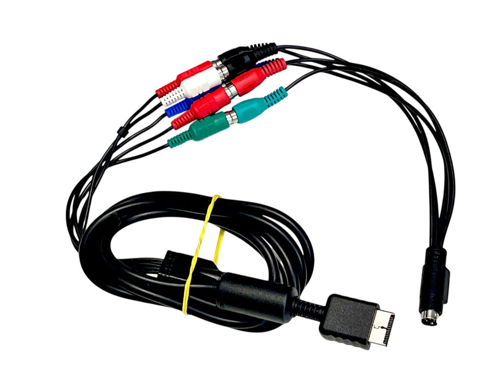 DESCRIPTION: This PlayStation AV Multi-Out to Composite RCA cable allows PlayStation consoles to connect to televisions using standard composite video inputs. The cable typically supports systems such as the PlayStation, PlayStation 2, and early PlayStation 3 models through the Sony AV multi-out port. Featuring colour-coded connectors for video and stereo audio, it provides a simple and reliable connection for older televisions and retro gaming setups. A practical replacement cable for gamers restoring classic PlayStation hardware or building a retro gaming collection that relies on composite video connections.