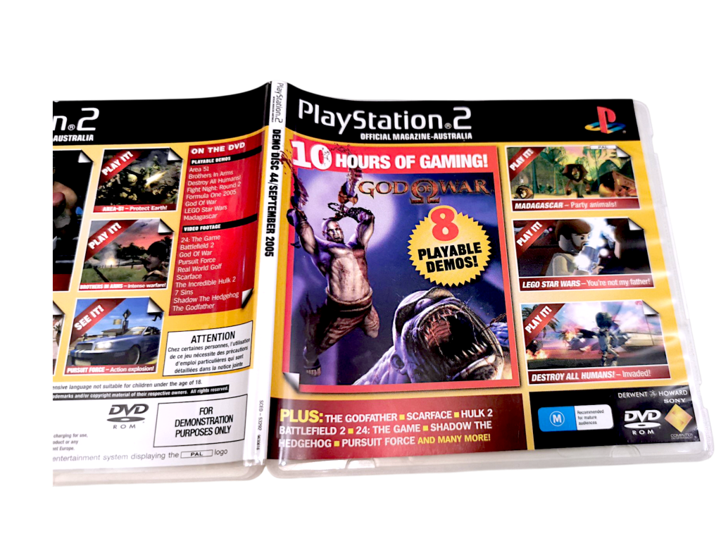 PlayStation 2 Demo Disc PS2 Demo Disc (8 PLAYABLE DEMOS incl. God of War) complete with case. This pre-owned Sony PlaySstation 2 demo game is in good condition and comes complete with pictured mini slimline demo game case + game disc. This game includes the pictured contents; refer to the photographs.