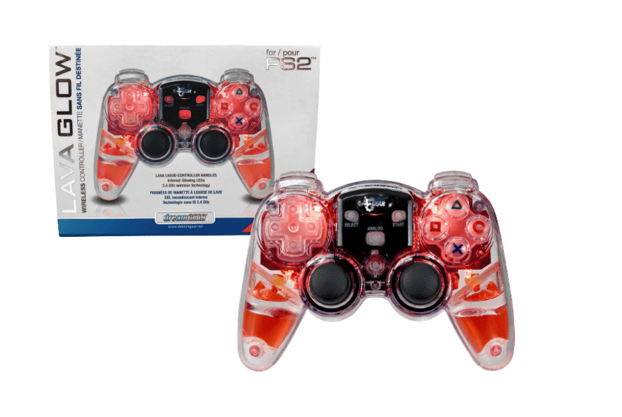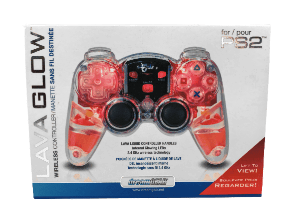 The Lava Glow Wireless controller for PS2® is designed for the gamer who demands only the best in wireless gaming technology. The Lava Glow Wireless utilizes the latest wireless technology to provide 100% latencyfree wireless gaming. The glowing liquid handles, comfortable design and wireless technology put the Lava Glow controller in a league of its own. The game begins with Lava Glow Wireless.