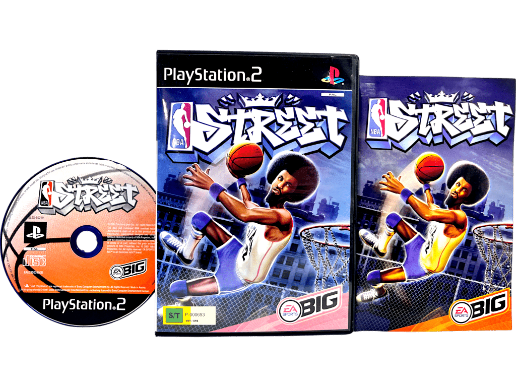 Excellent condition & 100% complete with contents: NBA STREET (The Original NBA Street Game) for SONY PlayStation 2 / PS2. This preowned game is in very tidy condition and comes complete with case + cover + manual / booklet + game disc. Case is a GENUINE BLACK SONY PLAYSTATION 2 CASE. Top right corner of the case has a small spot of laminate plastic wear, but this is purely cosmetic, and each of the internal contents are superb. A tidy and complete collector’s item, overall.