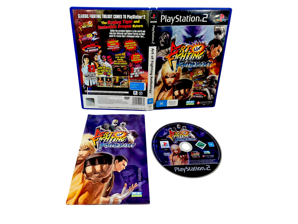GENUINE PAL Edition (NZ Region) in excellent condition & 100% complete with contents: The ART OF FIGHTING ANTHOLOGY for SONY PlayStation 2 / PS2. This preowned game is in superb condition and comes complete with case + cover + manual / booklet + game disc. A tidy and complete collector’s item. Refer photographs.
