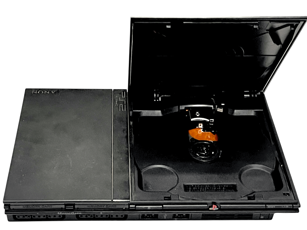 Genuine SONY PlayStation 2 Slim Console. This preowned PS2 console powers up fine and displays picture, but the laser is not reading discs as it should. Selling as a PlayStation 2 not reading discs and in need of repair. Console only. No adapters, cables or accessories included.