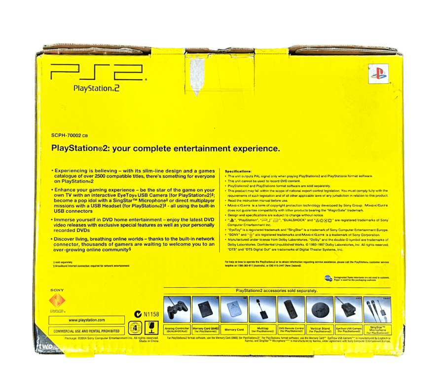 Rare Find: SONY PlayStation 2 Slim Console / PS2 Slim Console Bundle with Box. This PS2 Slim includes Genuine Sony Controller + Sony AC Power Adapter + Sony AVI Leads + Detachable Power Lead all inside BOX. This preowned PS2 Slim is in very good condition and perfect working order, with very mild cosmetic imperfections only. The box is excellent condition as pictured. A suitable Christmas gift.