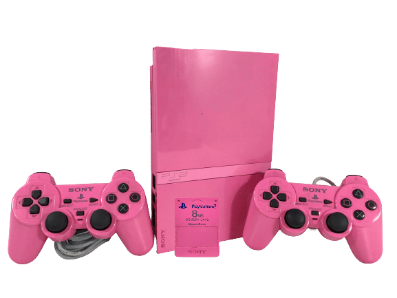 RARE FIND: COMPLETE BOX SET – LIMITED EDITION PINK PS2 Console in good condition and 100% complete with matching HOT PINK PS2 Controllers x 2 and PINK PS2 Memory Card – All INSIDE ORIGINAL BOX. This Authentic Sony Pink Limited Edition Console Bundle is a tidy and complete collector’s set. Box has expected card wear from storage pictured, but the contents inside are very tidy with light cosmetic imperfections only. Add this complete matching bundle to your collection today!