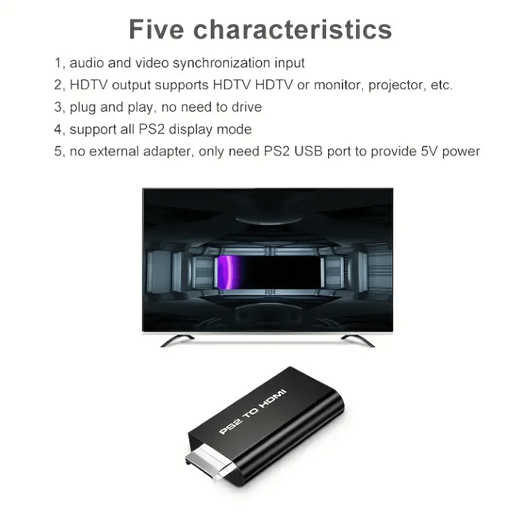 Suitable For PS2 TO HDMI, For PS2 To HDMI, Game To HDMI, With Audio And Video Converter For PS2 Connector For HDMI Converter Adapter, For PS2 Connector For HDMI Video Converter For HDTV Connector For HDMI Monitor AV Connector For HDMI Signal Transfer Adapter, Supports For Playstation 2 Display Modes Display Modes Transfer Adapter.