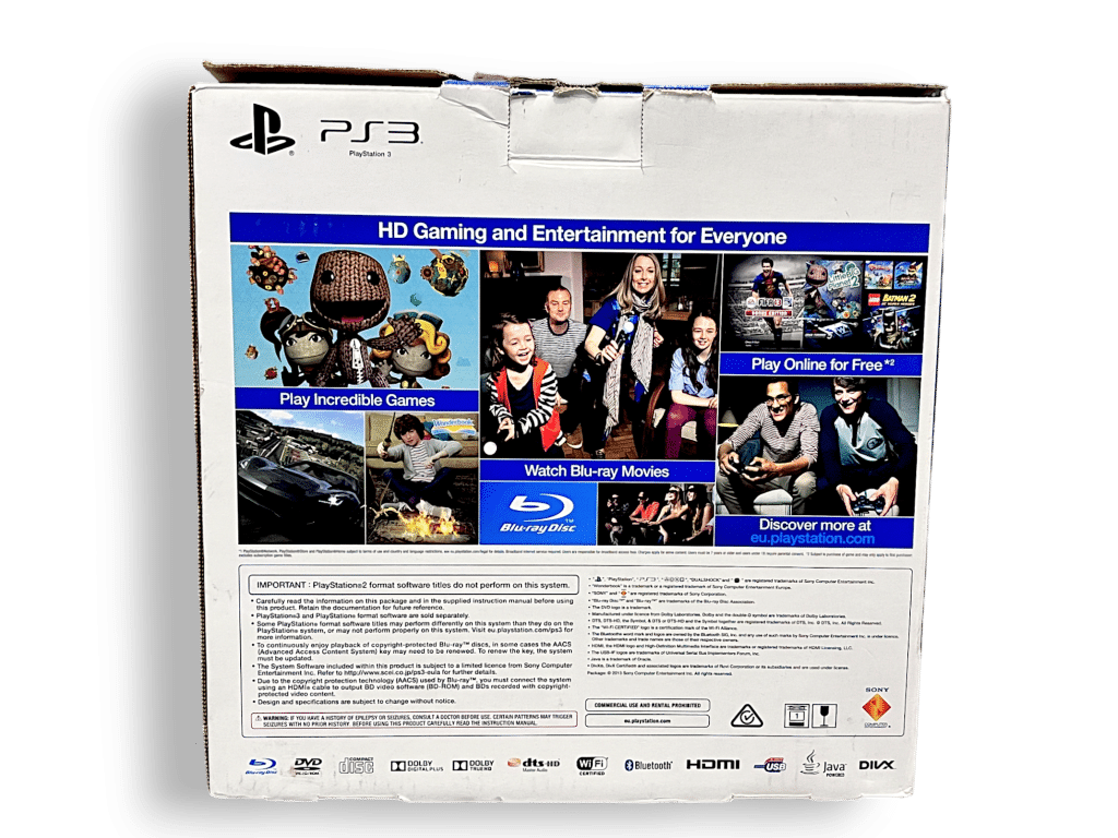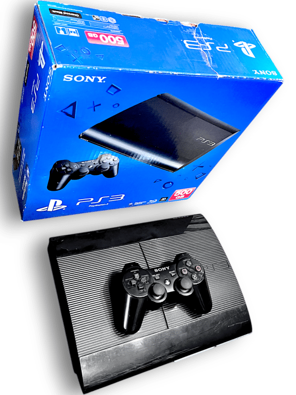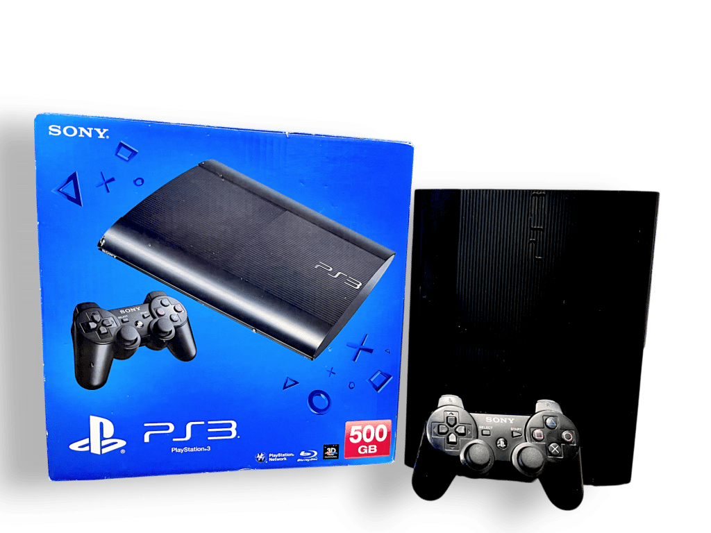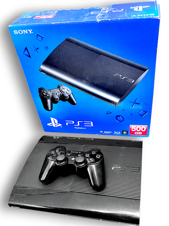 BOXED SONY PS3 Super-Slim Console with a LARGE 1TB Hard Drive + GEHUINE SONY Wireless PS3 Controller + HDMI Lead + Power Lead + USB Charging Lead. This preowned PlayStation 3 is in good condition and perfect working order.