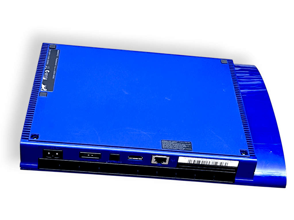 Genuine LIMITED EDITION BLUE 500GB SONY PS3 Super-Slim Console in excellent condition + matching Official Sony Limited Blue PS3 controller + Official Sony Limited BLACK PS3 controller and cables. This preowned authentic Limited Release is a very rare find – tidy with only surface cosmetic imperfections, cables each superb. A lovely collector’s item.