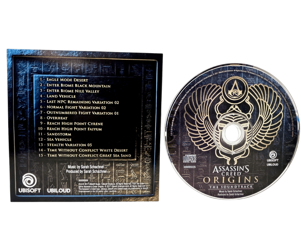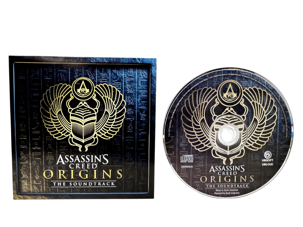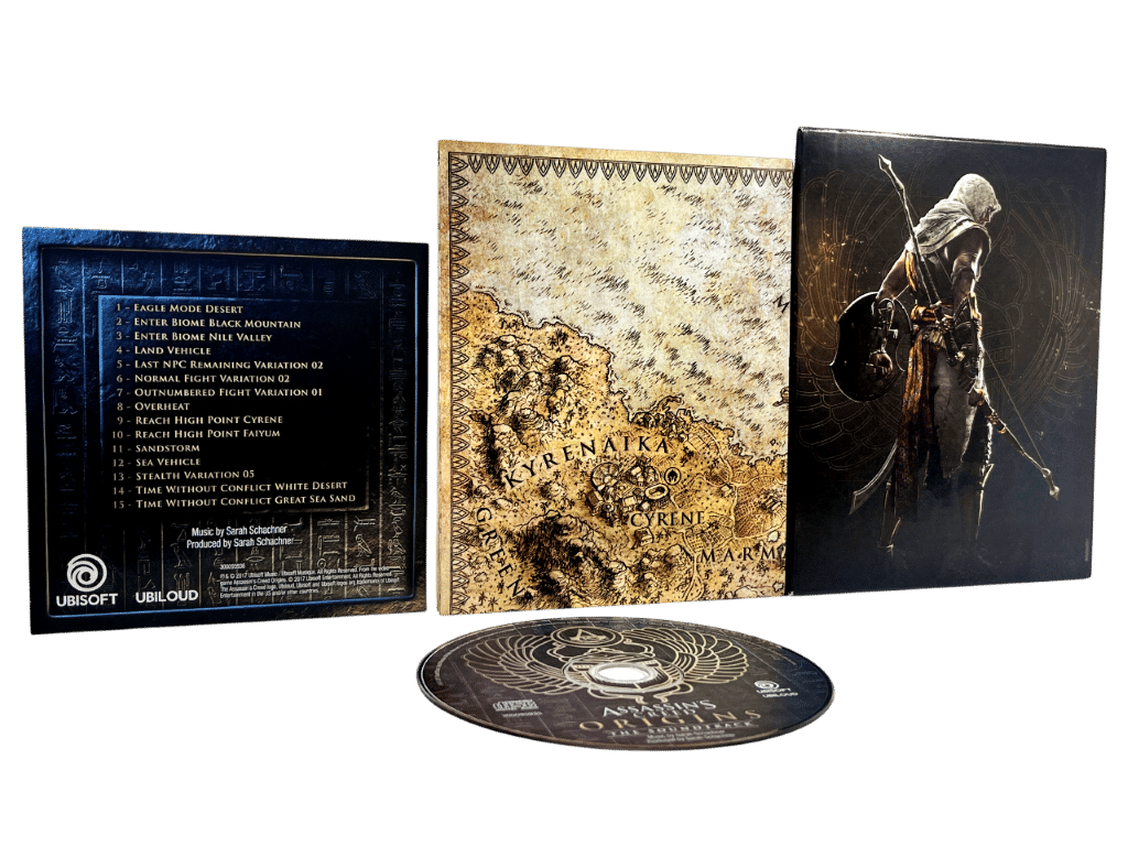 LIMITED COLLECTOR’S DELUXE SOUNDTRACK + MAP for Assassin’s Creed Origins DELUXE EDITION. Game disc NOT included. These preowned collectibles are in excellent condition, and the soundtrack comes complete with its soundtrack matching box / envelope, and both the soundtrack and map include the bundled large Cardboard Case pictured. Map pristine and soundtrack equally superlative. A worthy collector’s bundle. Refer photographs. Note that the game disc is NOT included. This listing includes the Deluxe Edition Soundtrack Disc (complete with carded sleeve) + Map.